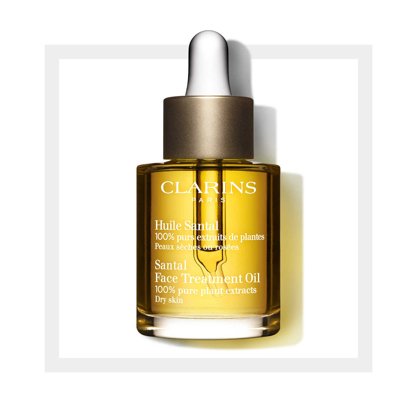 Soothing relief for Dry or Extra-Dry skin. 100% pure plant extracts. Clarins’ essential oils of Sandalwood, Cardamom and Lavender tone, soothe, comfort and decongest skin that is dry, irritated or stressed. Hazelnut Oil softens, smoothes and reduces redness. Helps prevent moisture loss and the formation of fine lines.